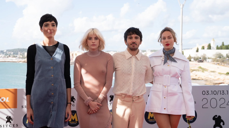 Isabel Peña, Malena Villa, Pedro Martín-Calero i Ester Expósito durant la presentació de la pel·lícula. // Sitges Film Festival